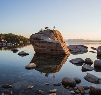 Legend has it that mobsters often chose Lake Tahoe as the final resting place of their foes. At a maximum depth of 1645 feet, and with a noticeably convex surface due to it's impressive scale, it sure does make for a good place to disappear. Luckily for us, we enjoyed hours of swimming, diving, and waterside activities alongside the shoreline - no encounters with mobsters or their victims. Our favorite spot along the route was Meeks Bay, where